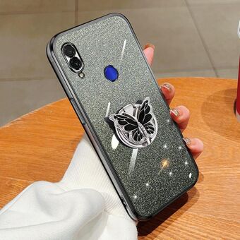 For Redmi Note 7 Plated Gradient Glitter Butterfly Holder TPU Phone Case(Black)
