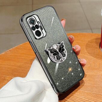 For Redmi Note 10 4G Plated Gradient Glitter Butterfly Holder TPU Phone Case(Silver)