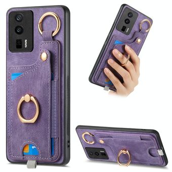 For Redmi K60 / 60 Pro Retro Skin-feel Ring Card Bag Phone Case with Hang Loop(Purple)