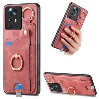 For Xiaomi 12T / Redmi K50 Ultra Retro Skin-feel Ring Card Bag Phone Case with Hang Loop(Pink)