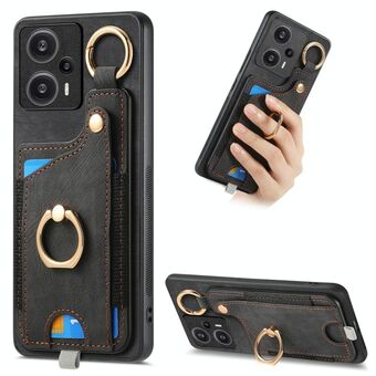 For Redmi Note 12 Turbo Retro Skin-feel Ring Card Bag Phone Case with Hang Loop(Black)