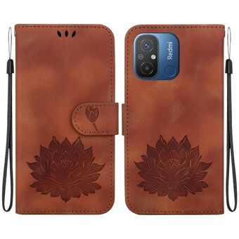 For Xiaomi Redmi 12C / 11A Lotus Embossed Leather Phone Case(Brown)