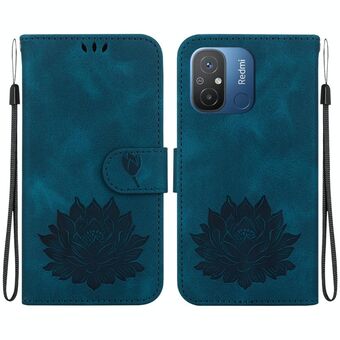 For Xiaomi Redmi 12C / 11A Lotus Embossed Leather Phone Case(Dark Blue)