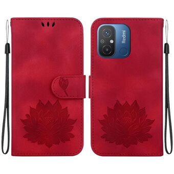 For Xiaomi Redmi 12C / 11A Lotus Embossed Leather Phone Case(Red)
