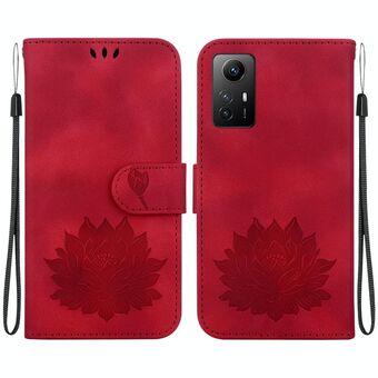 For Xiaomi Redmi Note 12 4G Global Lotus Embossed Leather Phone Case(Red)