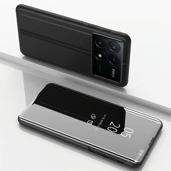 For Xiaomi Poco F6 Pro Plated Mirror Horizontal Flip Leather Phone Case with Holder(Black)
