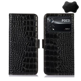 For Xiaomi Poco X4 Pro 5G Crocodile Top Layer Cowhide Leather Phone Case(Black)
