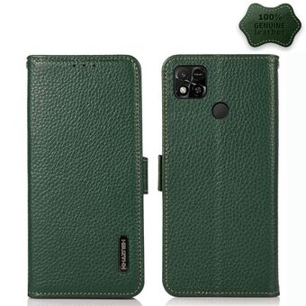 For Xiaomi Redmi 10A KHAZNEH Side-Magnetic Litchi Genuine Leather RFID Phone Case(Green)