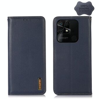 For Xiaomi Redmi 10A KHAZNEH Side-Magnetic Litchi Genuine Leather RFID Phone Case(Blue)