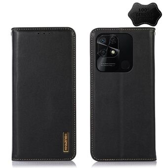 For Xiaomi Redmi 10C / 10 India KHAZNEH Nappa Top Layer Cowhide Leather Phone Case(Black)