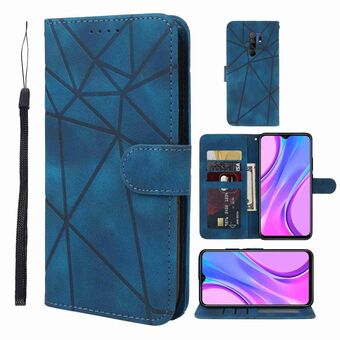 For Xiaomi Redmi 9 Skin Feel Geometric Lines Leather Phone Case(Blue)
