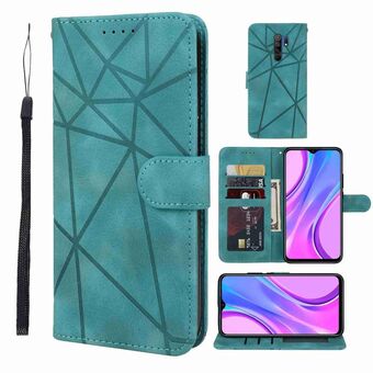 For Xiaomi Redmi 9 Skin Feel Geometric Lines Leather Phone Case(Green)