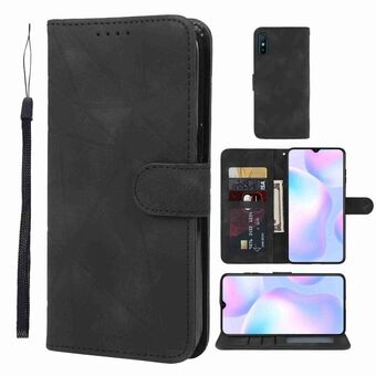 For Xiaomi Redmi 9A Skin Feel Geometric Lines Leather Phone Case(Black)
