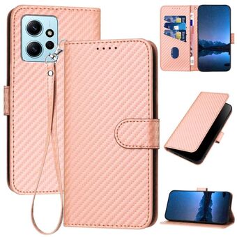 For Xiaomi Redmi Note 12 4G Global YX0070 Carbon Fiber Buckle Leather Phone Case with Lanyard(Pink)
