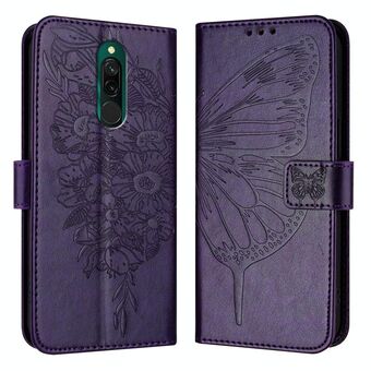 For Xiaomi Redmi 8 / 8A Embossed Butterfly Leather Phone Case(Dark Purple)