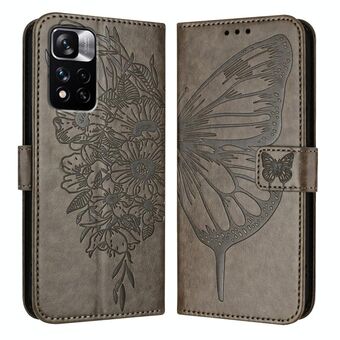 For Xiaomi Poco X4 NFC Embossed Butterfly Leather Phone Case(Grey)