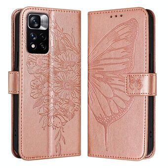 For Xiaomi Poco X4 NFC Embossed Butterfly Leather Phone Case(Rose Gold)