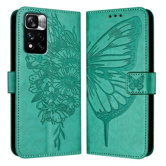 For Xiaomi Poco X4 NFC Embossed Butterfly Leather Phone Case(Green)