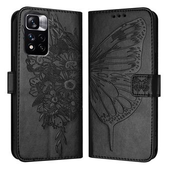 For Xiaomi Poco X4 NFC Embossed Butterfly Leather Phone Case(Black)