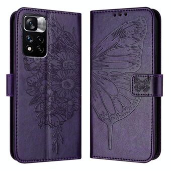 For Xiaomi Poco X4 NFC Embossed Butterfly Leather Phone Case(Purple)