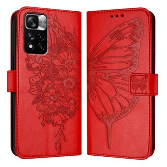 For Xiaomi Poco X4 NFC Embossed Butterfly Leather Phone Case(Red)