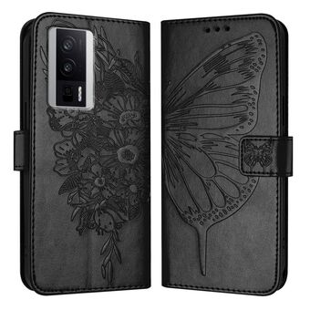For Xiaomi Poco F5 Pro/Redmi K60/K60 Pro Embossed Butterfly Leather Phone Case(Black)