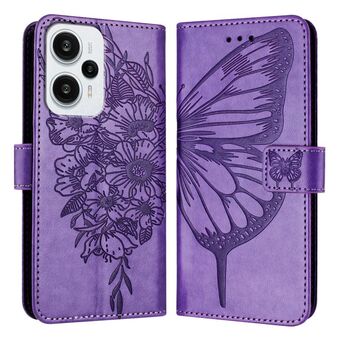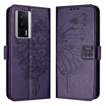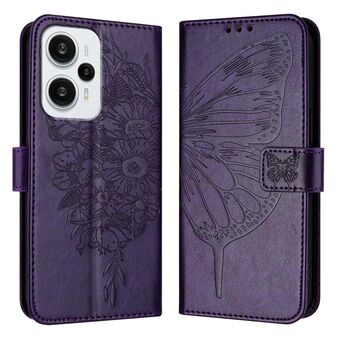 For Xiaomi Poco F5/Redmi Note 12 Turbo 5G Embossed Butterfly Leather Phone Case(Purple)