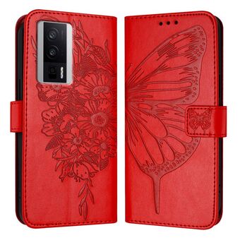 For Xiaomi Poco F5 Pro/Redmi K60/K60 Pro Embossed Butterfly Leather Phone Case(Red)