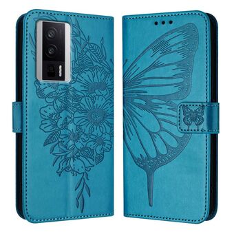 For Xiaomi Poco F5 Pro/Redmi K60/K60 Pro Embossed Butterfly Leather Phone Case(Blue)