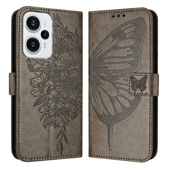 For Xiaomi Poco F5/Redmi Note 12 Turbo 5G Embossed Butterfly Leather Phone Case(Grey)