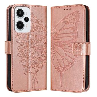 For Xiaomi Poco F5/Redmi Note 12 Turbo 5G Embossed Butterfly Leather Phone Case(Rose Gold)