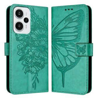 For Xiaomi Poco F5/Redmi Note 12 Turbo 5G Embossed Butterfly Leather Phone Case(Green)