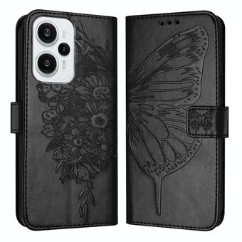 For Xiaomi Poco F5/Redmi Note 12 Turbo 5G Embossed Butterfly Leather Phone Case(Black)