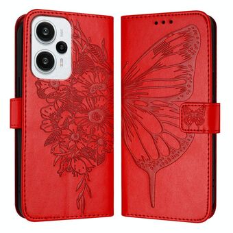 For Xiaomi Poco F5/Redmi Note 12 Turbo 5G Embossed Butterfly Leather Phone Case(Red)