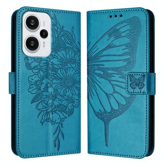 For Xiaomi Poco F5/Redmi Note 12 Turbo 5G Embossed Butterfly Leather Phone Case(Blue)