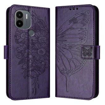 For Xiaomi Poco C51 / Poco C50 4G Embossed Butterfly Leather Phone Case(Dark Purple)
