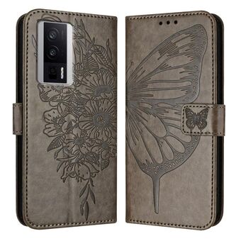 For Xiaomi Poco F5 Pro/Redmi K60/K60 Pro Embossed Butterfly Leather Phone Case(Grey)