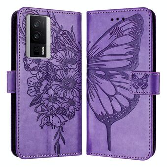 For Xiaomi Poco F5 Pro/Redmi K60/K60 Pro Embossed Butterfly Leather Phone Case(Purple)