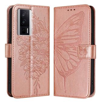 For Xiaomi Poco F5 Pro/Redmi K60/K60 Pro Embossed Butterfly Leather Phone Case(Rose Gold)