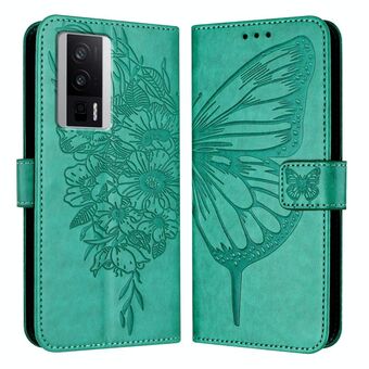 For Xiaomi Poco F5 Pro/Redmi K60/K60 Pro Embossed Butterfly Leather Phone Case(Green)