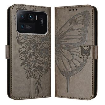 For Xiaomi Mi 11 Ultra Embossed Butterfly Leather Phone Case(Grey)