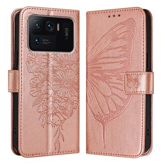 For Xiaomi Mi 11 Ultra Embossed Butterfly Leather Phone Case(Rose Gold)