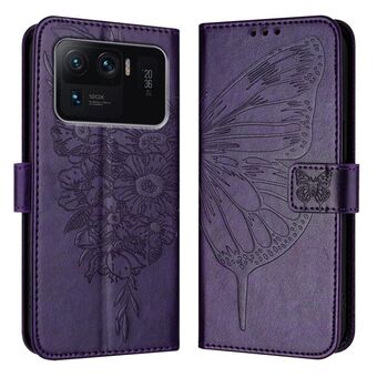 For Xiaomi Mi 11 Ultra Embossed Butterfly Leather Phone Case(Purple)