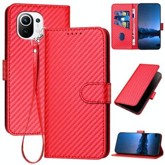 For Xiaomi Mi 11 YX0070 Carbon Fiber Buckle Leather Phone Case with Lanyard(Red)