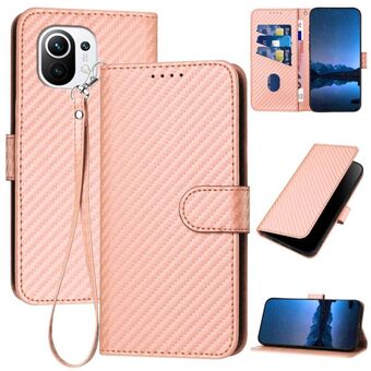 For Xiaomi Mi 11 YX0070 Carbon Fiber Buckle Leather Phone Case with Lanyard(Pink)