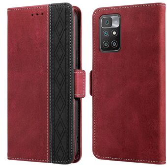 For Xiaomi Redmi 10 4G Stitching Side-Magnetic RFID Leather Phone Case(Red)