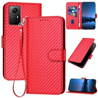 For Xiaomi Redmi Note 12S 4G Global YX0070 Carbon Fiber Buckle Leather Phone Case with Lanyard(Red)