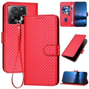 For Xiaomi 13T/13T Pro/Redmi K60 Ultra YX0070 Carbon Fiber Buckle Leather Phone Case with Lanyard(Red)