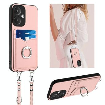 For Xiaomi Redmi 13C 5G / 13R R20 Crossbody Rope Ring Card Holder Phone Case(Pink)