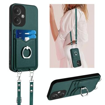 For Xiaomi Redmi 13C 5G / 13R R20 Crossbody Rope Ring Card Holder Phone Case(Green)